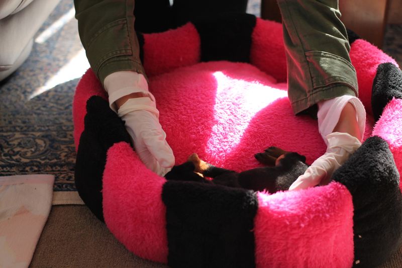 フードを入れる器を加えて歩いたり、ワンダーボール(電池で勝手に動くボール)に驚いたり・・・。